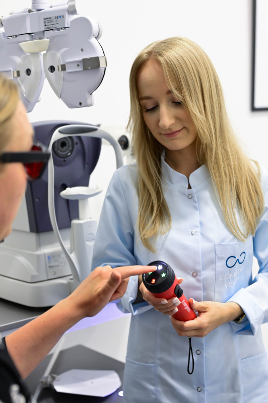 Pomiar ciśnienia wewnątrzgałkowego, Konsultacja optometryczna - kwalifikacja do gabinetowej terapii widzenia, Konsultacja optometryczna - kontrola do 3 miesięcy, Konsultacja optometryczna - kontrola po odbyciu serii ćwiczeń gabinetowych, Konsultacja optometryczna - diagnoza trudności szkolnych, Konsultacja optometryczna - dla pacjentów rozważających laserową korekcję wady wzroku, Konsultacja optometryczna, Konsultacja diagnostyczna kwalifikująca do fototerapii Syntonics